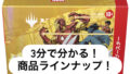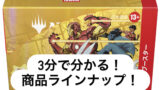 プレイ・ブースター5パック、レア・神話レアが入ったイベント用ブースター、レア・神話レアカード、サプライがセットで封入された製品で、主にお店で遊ぶための商品となっております。