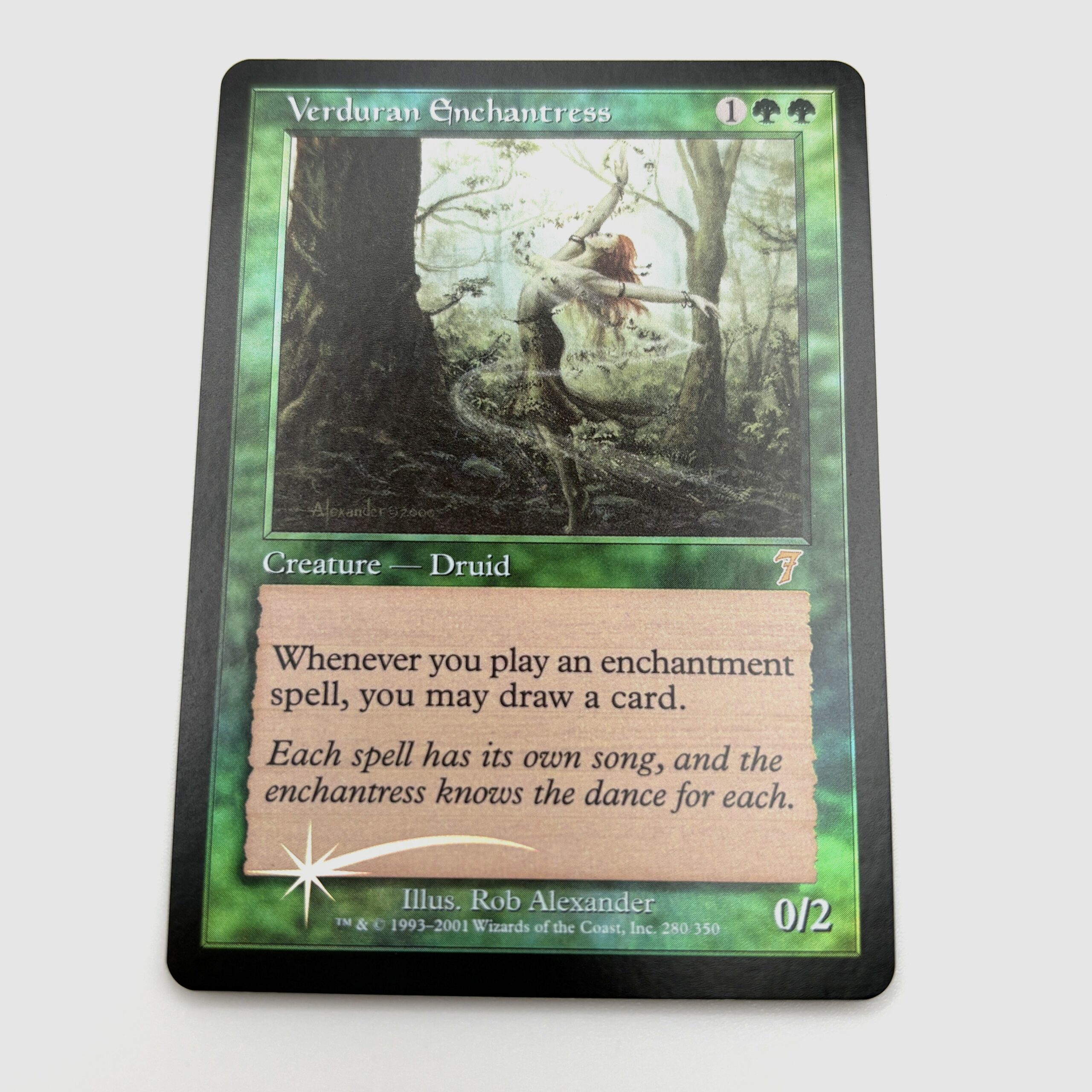 「新緑の女魔術師/Verduran Enchantress」でした!34,800円もするカードなのでここで急に価格が跳ね上がりました!
