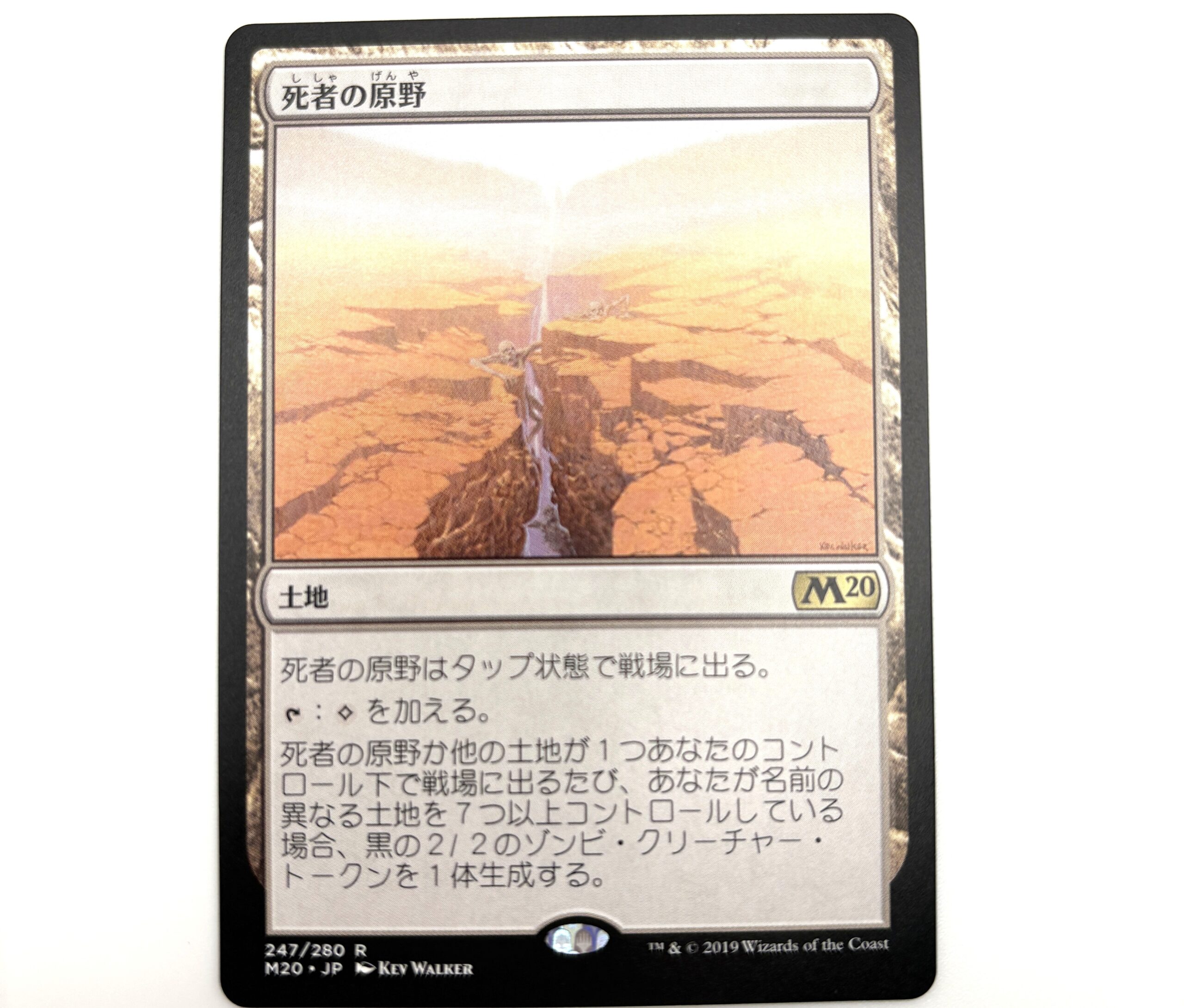 「死者の原野」でした!条件はそれなりに厳しいものの、土地が7種類あるとトークンを出せるカードですね。