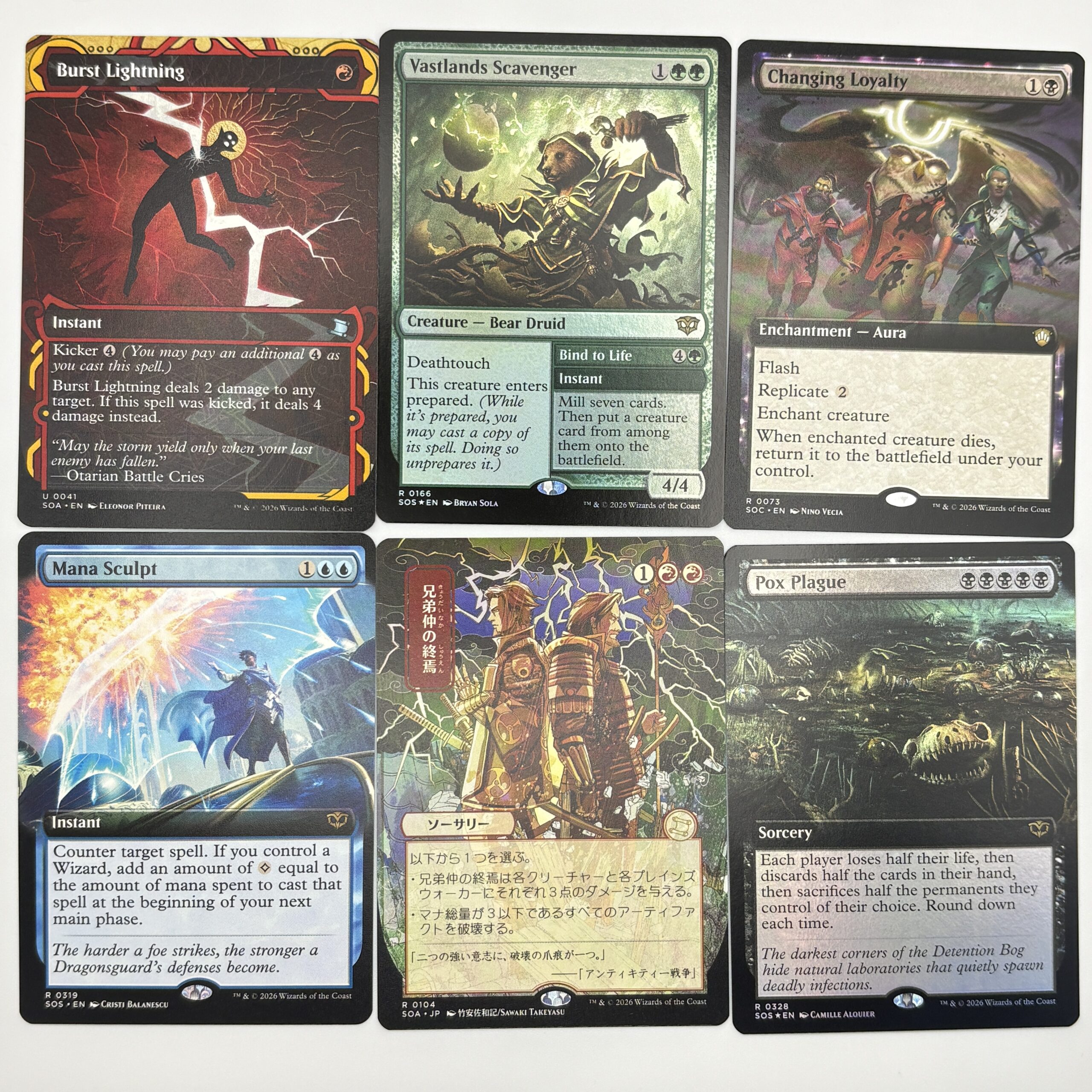 インスタント・ソーサリーに最強メカニズムとも名高い「ストーム」を付与します。このクリーチャー自身がかなり重いのですが、ド派手な動きをするのでオススメしたい1枚です。何よりイラストが良いので他の4体も欲しいですね。